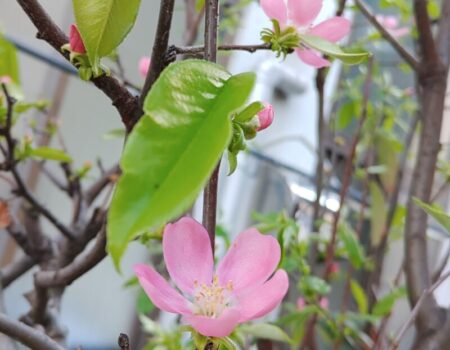 わが家の庭の花梨も花が開き始めました。