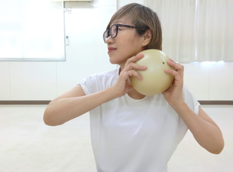 ボールは「鎖骨から耳の後ろまで転がす」と覚えておけば大丈夫。