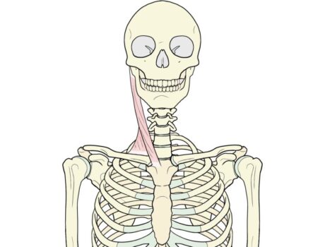 胸骨と鎖骨の1/3から始り、乳様突起(耳の後ろの尖った骨)及び後頭骨上項線までついている筋肉です。